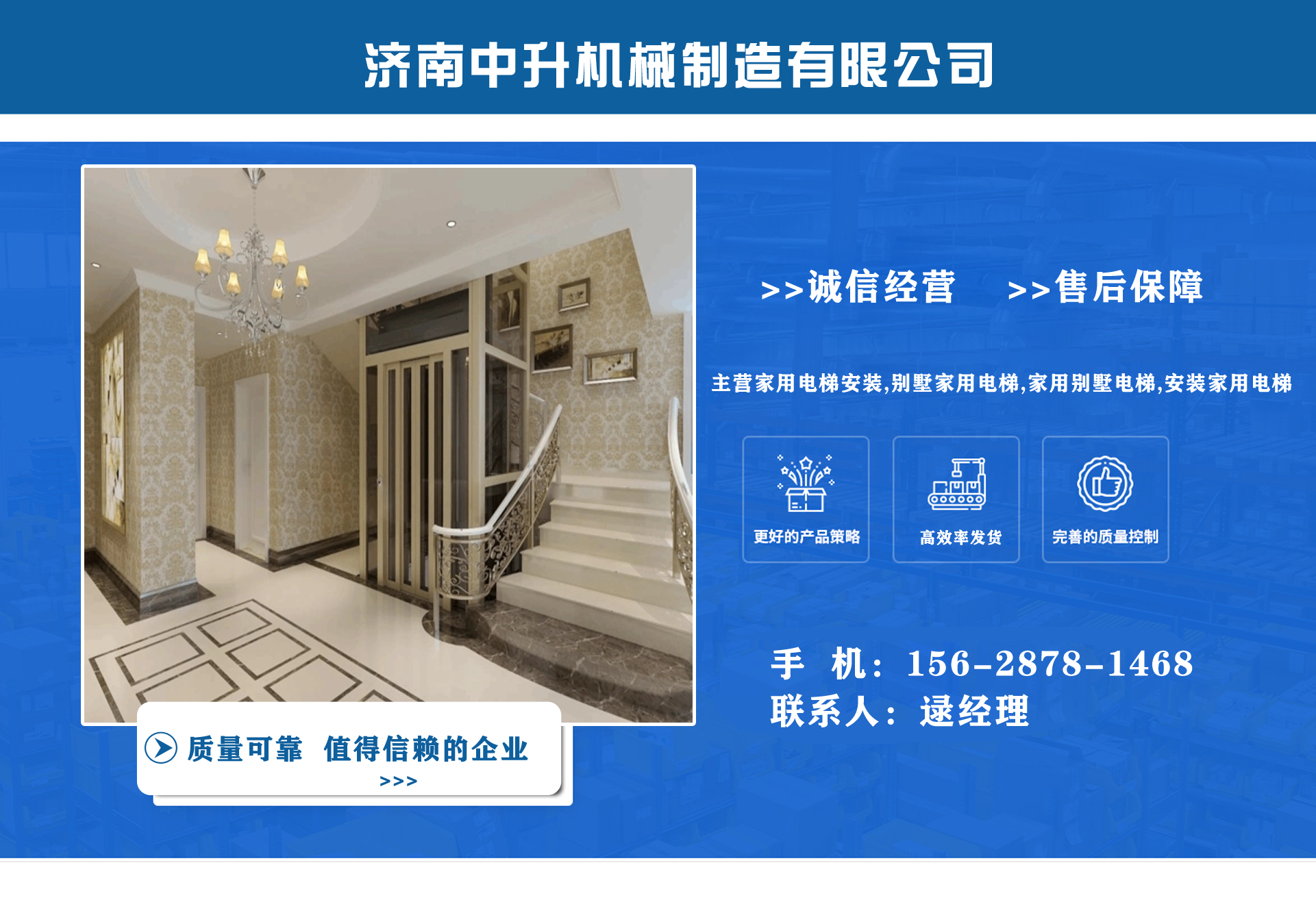 濟(jì)南中升機(jī)械制造有限公司主營(yíng)家用電梯安裝,別墅家用電梯,家用別墅電梯,安裝家用電梯等業(yè)務(wù),質(zhì)量可靠,值得信賴! 公司為客戶提供免費(fèi)上門測(cè)量,根據(jù)實(shí)際情況1對(duì)1服務(wù),保障符合用戶需求,終身提供售后服務(wù),讓用戶買的舒心用的放心。匠心團(tuán)隊(duì),打造信賴產(chǎn)品,我們有團(tuán)結(jié)、奮進(jìn)拼搏的匠心團(tuán)隊(duì),為您提供可信賴的品質(zhì)保證。 從創(chuàng)立以來(lái)一直嚴(yán)格執(zhí)行質(zhì)量管理體系、環(huán)境管理體系等相關(guān)標(biāo)準(zhǔn)管理體系,“顧客滿意”是我們始終如一的追求。我們有屬于自己培養(yǎng)的安裝隊(duì)伍,24小時(shí)服務(wù)電話,為您提供可靠的服務(wù)與支持。 我們的愿景是建設(shè)國(guó)內(nèi)具有影響力的電梯公司,做城市美好空間的好伙伴。...